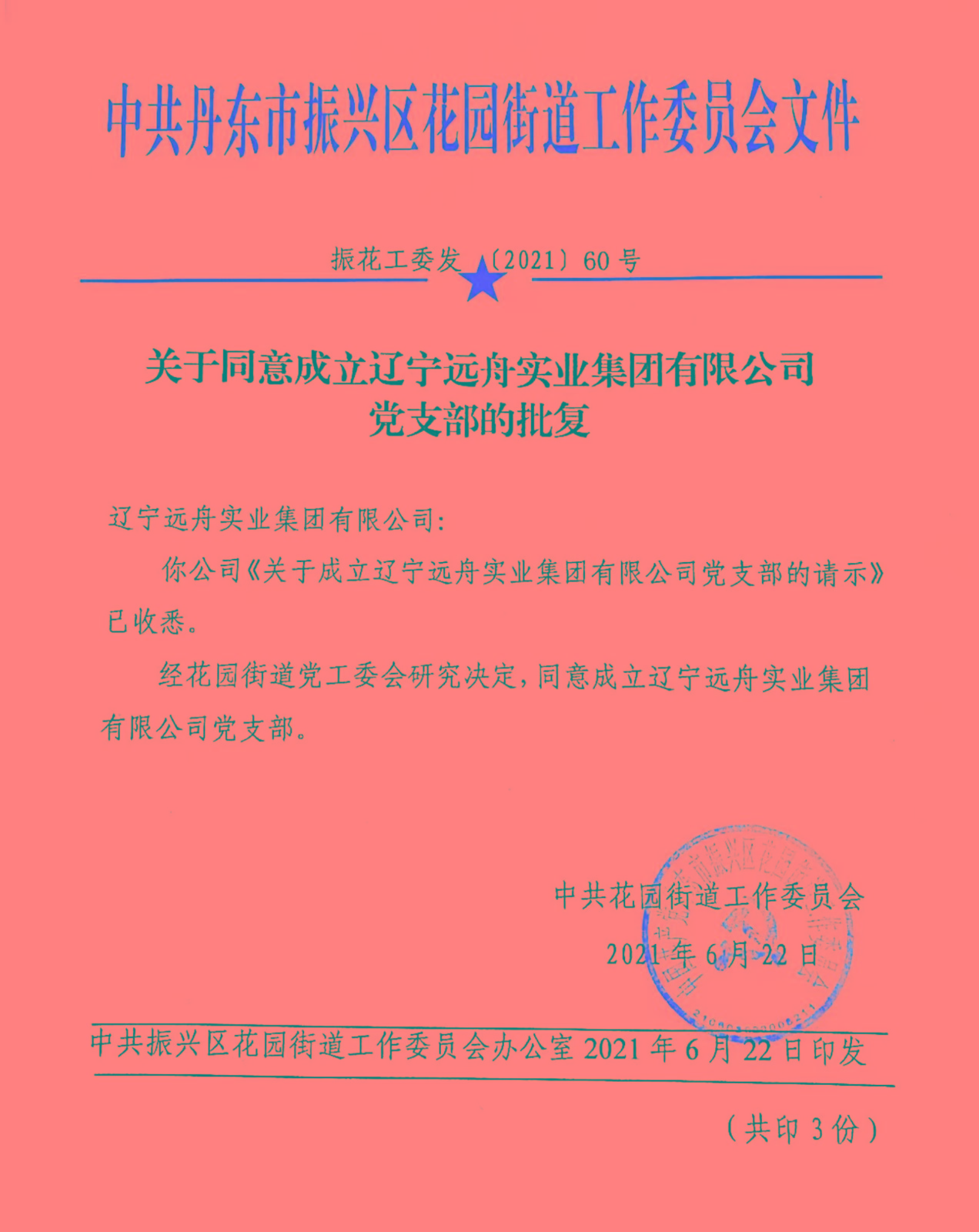 2021年06月———遼寧遠(yuǎn)舟實(shí)業(yè)集團(tuán)有限公司黨支部正式成立